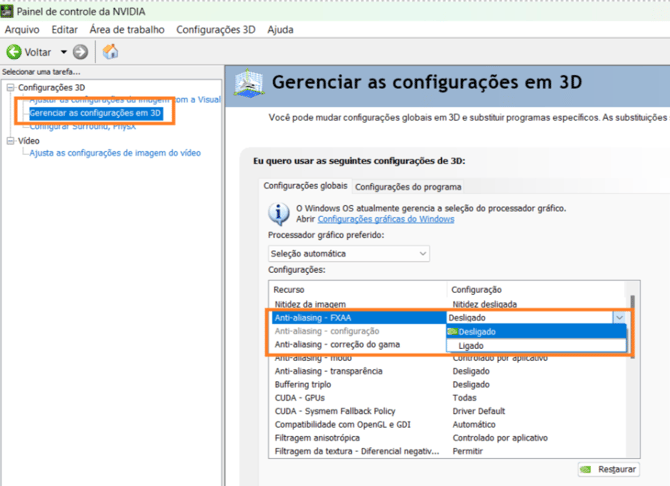 Desativando o Anti-aliasing - FXAA da placa de vídeo da NVidia