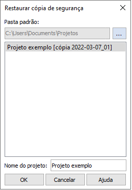 Ao restaurar uma cópia de atualização, será criada uma nova pasta de projeto com o nome que foi definido na janela Restaurar cópia de segurança.