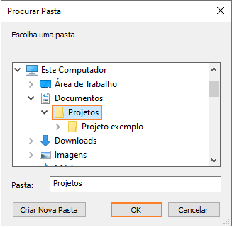 - Na janela Procurar pasta selecione a pasta onde o arquivo foi salvo;