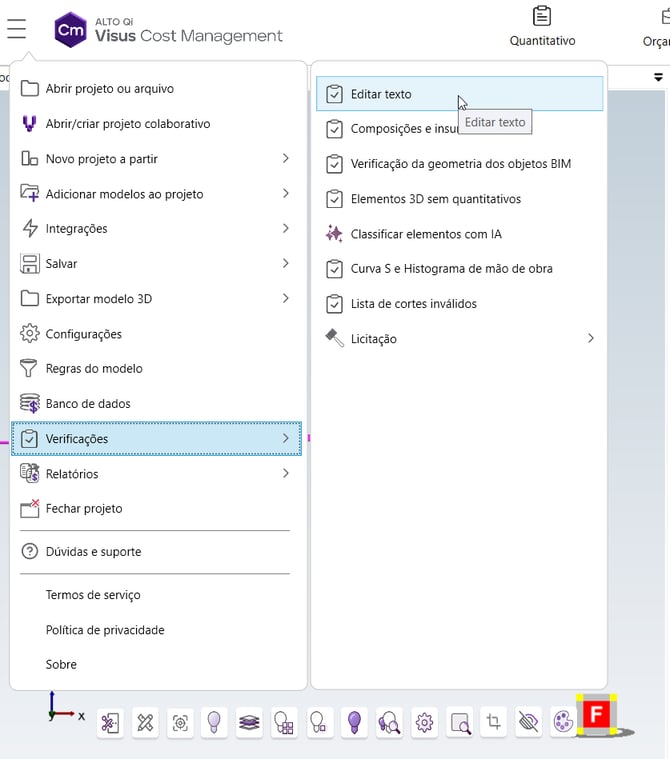 Por vezes as propriedades dos elementos que estamos orçando não apresentam descrições muito claras. Ou ainda podem não ser muito legíveis, o que acaba prejudicando o fluxo de trabalho e a qualidade estética de nossos relatórios. Nesses casos, o AltoQi Visus disponibiliza a ferramenta Editar texto, que permite que você substitua automaticamente uma porção de texto.