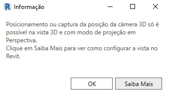 A fim de gerar as notas BCF no Revit através do Plugin AltoQi, é necessário que a visão 3D do programa esteja configurada no modo Perspectiva. Se não estiver configurado, será exibido o aviso:
