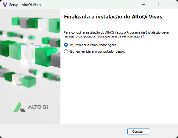 - Ao finalizar a instalação, é necessário realizar a reinicialização do computador. Você pode optar por reiniciar agora ou depois.