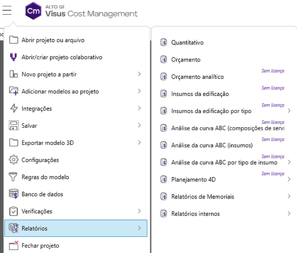 2- Um recurso do AltoQi Visus Cost Management apresenta a indicação "sem licença". O que isso quer dizer?