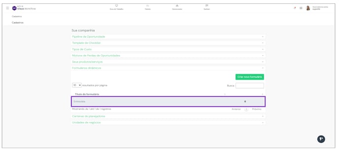 Todos os formulários da conta serão listados no tópico Formulários dinâmicos, para editá-los basta clicar sobre um item para abrir a janela de edição do mesmo.