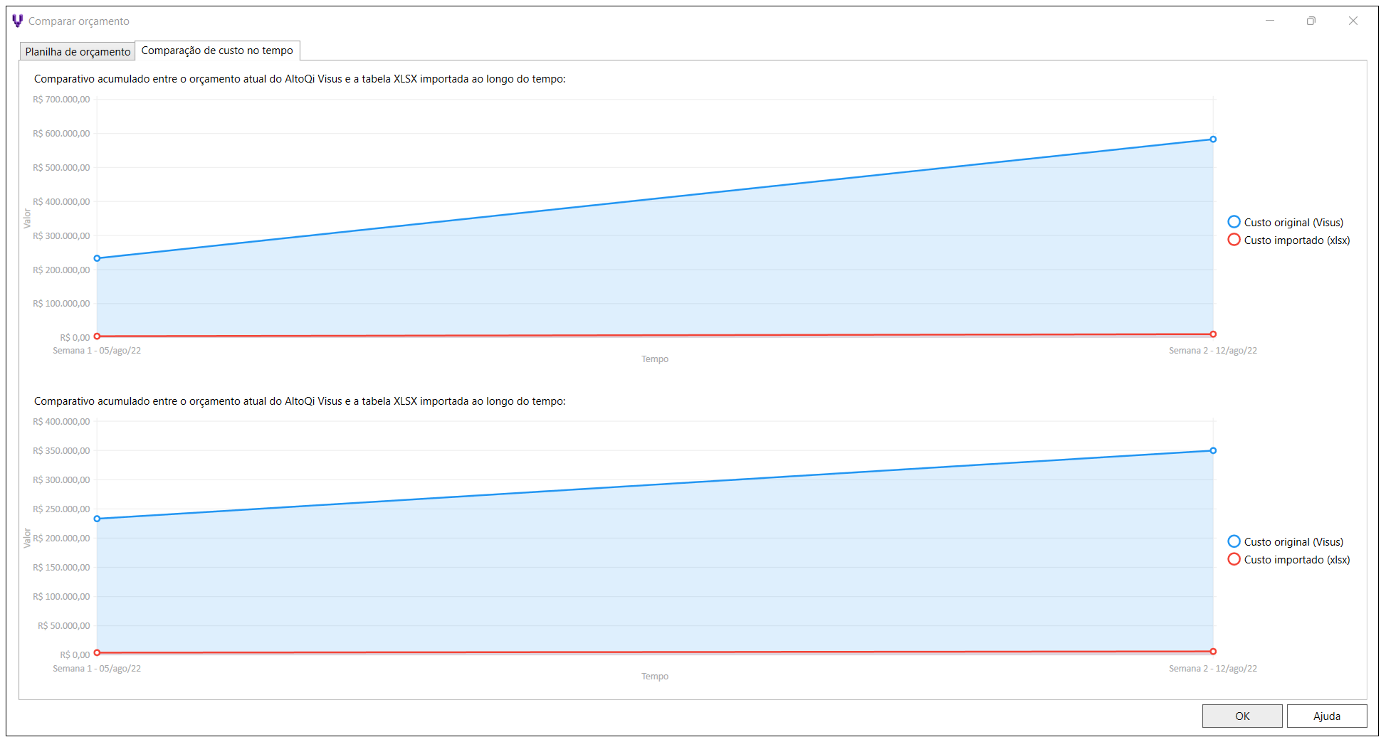 - Ainda, é possível, trocando de aba, acessar a janela Comparação de custo no tempo: