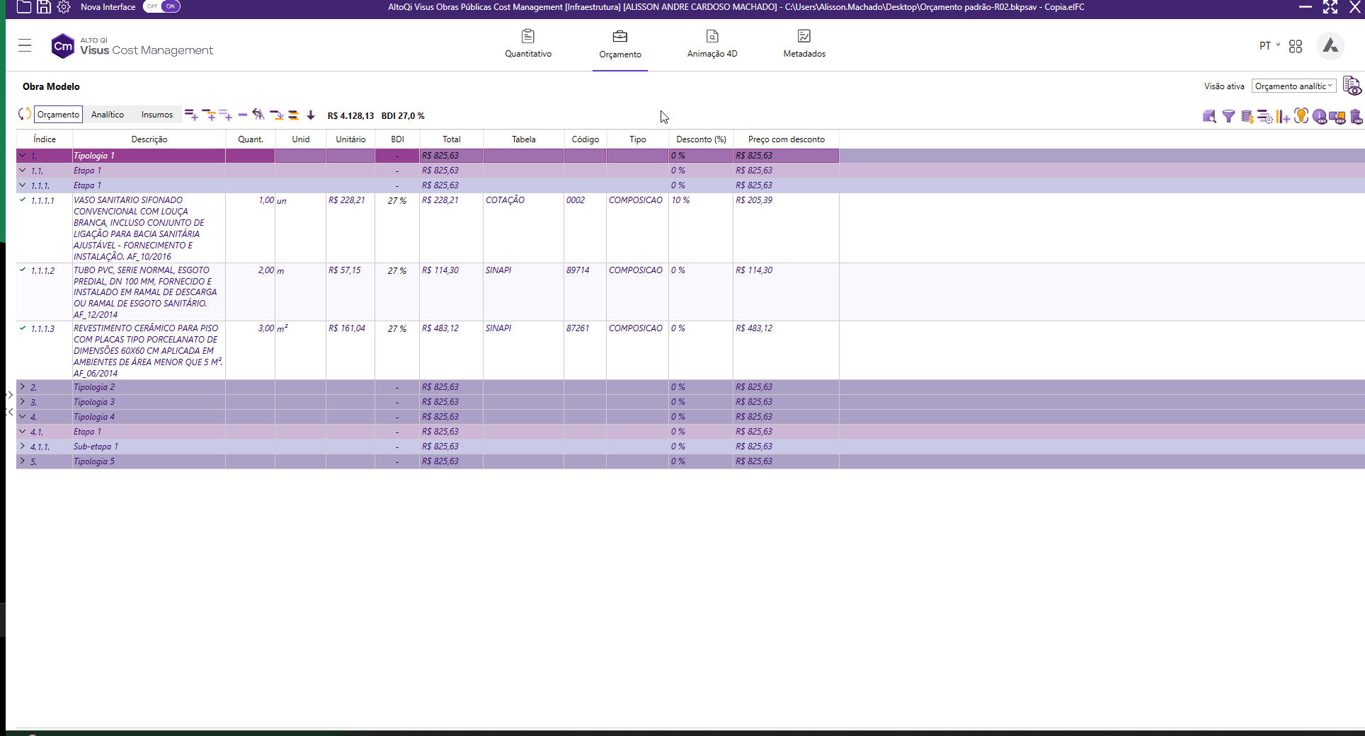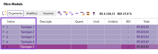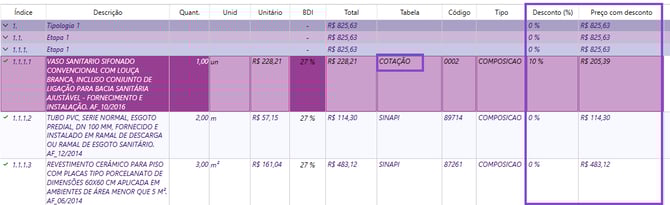 Esse recurso oferece flexibilidade para estruturar o orçamento de forma mais completa e adaptada à realidade da obra ou dos padrões de entrega.