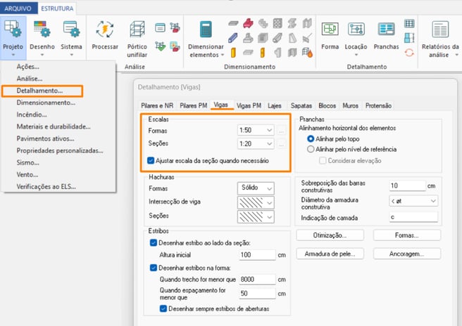 Como alterar a escala dos detalhamentos (vigas, lajes, pilares)