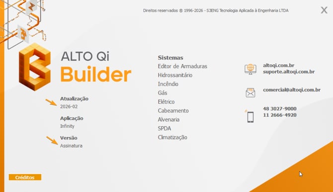 na barra de acesso rápido do AltoQi Builder; - Selecione a opção Sobre, que será redirecionado para a página com as informações do programa;