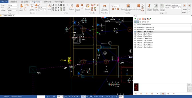 Na janela Peça, escolha o modelo do QTA conforme as especificações técnicas do projeto.