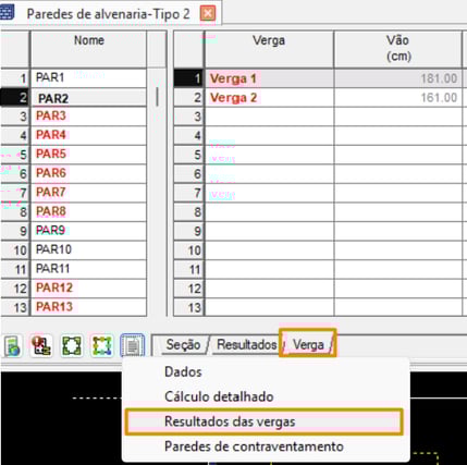 Caso o momento resistente seja menor que o atuante, então será emitido o Erro D162. Isso pode ser visto a partir da planilha de dimensionamento das paredes, acessando o menu Relatórios - Resultados das vergas.