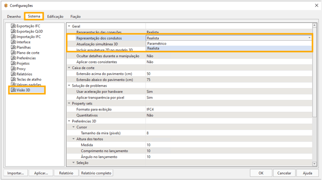 - Realista: habilita a representação realista dos condutos no modelo 3D.