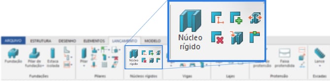 Este comando permite ajustar a configuração de núcleos rígidos no croqui. Veja como utilizá-lo: