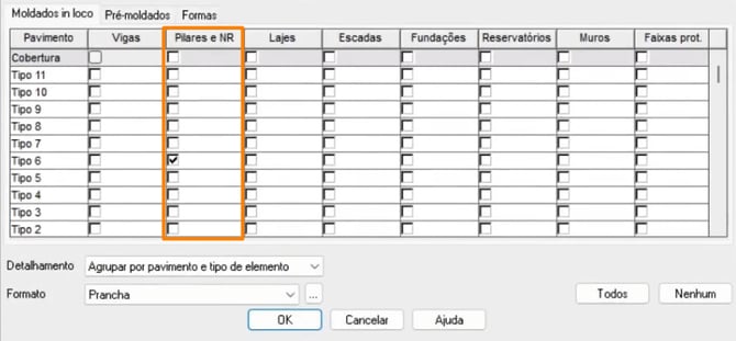 Já as pranchas podem ser geradas juntamente às pranchas dos pilares convencionais:
