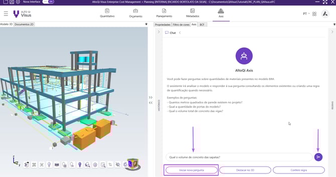 Para acessar o Assistente de IA para Levantamento de Quantitativos, basta clicar na Guia Axis: