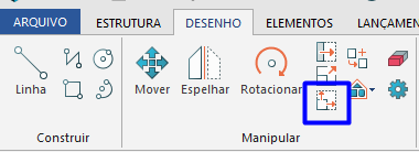 Para alterar a escala do croqui deve-se acessar a aba Desenho e em seguida utilizar o comando "Escalar":