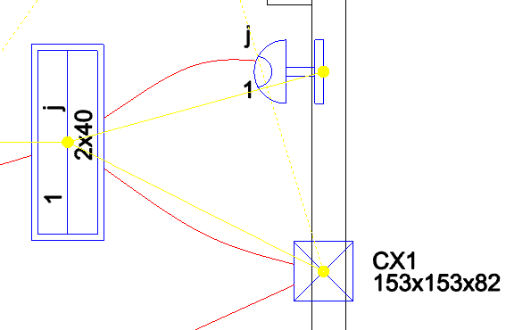 - A linha de comando exibirá a mensagem Conduto entre pavimentos – Fim e serão exibidas as representações dos pontos do pavimento inferior (pontos amarelos) e o cursor em forma de “Mira”;