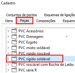 Para incluir uma nova peça no cadastro do programa realize o seguinte procedimento: