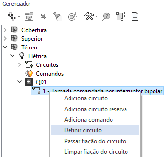 - Na janela Gerenciador, clique com o botão direito do mouse no circuito recém criado e selecione Definir Circuito;
