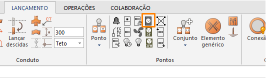 - Ainda na guia Lançamento, acesse o grupo Pontos, comando Ponto - Outros pontos de comando - Interruptor bipolar simples;
