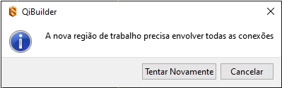 Ao tentar inserir uma região que não engloba todos os lançamentos em um croqui que já contém lançamentos, a seguinte mensagem será exibida: "A nova região de trabalho precisa envolver todas as conexões."