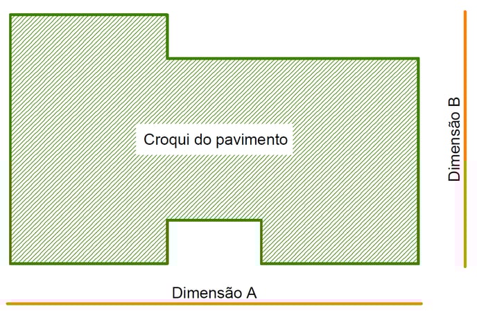 Por padrão, quando o croqui não possui uma Região de trabalho definida, a área de cada pavimento é considerada através da área de um retângulo imaginário que envolve todas as conexões do croqui em cada pavimento. Para o exemplo da figura abaixo, a área considerada pelo programa seria o produto da Dimensão A pela Dimensão B.
