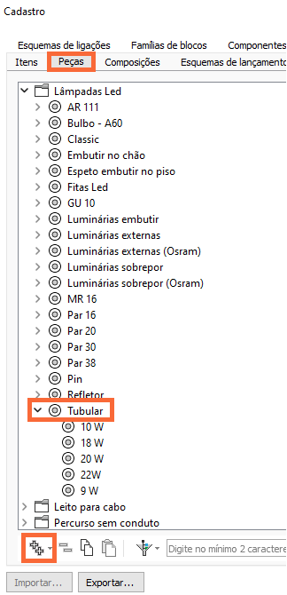 Com os procedimentos descritos neste artigo é possível adicionar uma nova lâmpada no cadastro. Após cadastrar a nova peça ela estará disponível para lançamento no projeto.