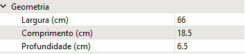 - Em Geometria preencha as dimensões da peça (valores utilizados na visão 3D);