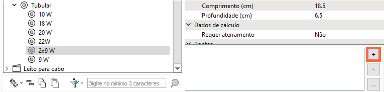 - Selecione esse item e altere seu Nome, por exemplo Luminária tubular de sobrepor 2 lâmpadas LED (este nome será exibido na lista de materiais):