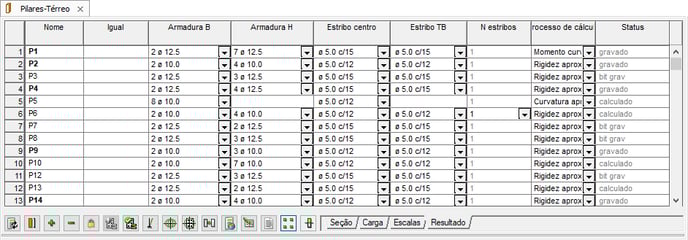 Mesmo a estrutura sendo reprocessada ou caso altere-se alguma configuração de projeto, os elementos com bitola gravada mantêm o diâmetro escolhido, alterando apenas a quantidade de barras, se necessário.