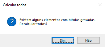 ). Ao utilizá-los, caso existam elementos com bitolas gravadas na janela corrente, a mensagem abaixo é emitida. Confirmando com Sim, a escolha de armaduras dos elementos com bitolas gravadas retorna para os valores adotados pelo programa.
