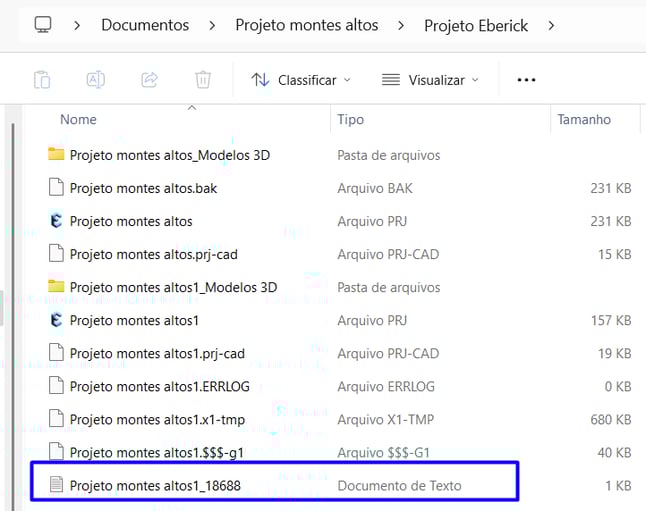O programa gera esse arquivo automaticamente ao processar a estrutura. Ele fica localizado na pasta da edificação criada em seu computador, dentro da pasta Projeto Eberick.