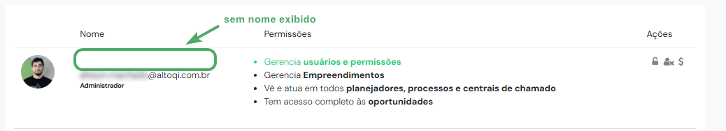 Os usuários que estão com o nome em branco, podem atualizar o nome de exibição dentro de seu próprio acesso: